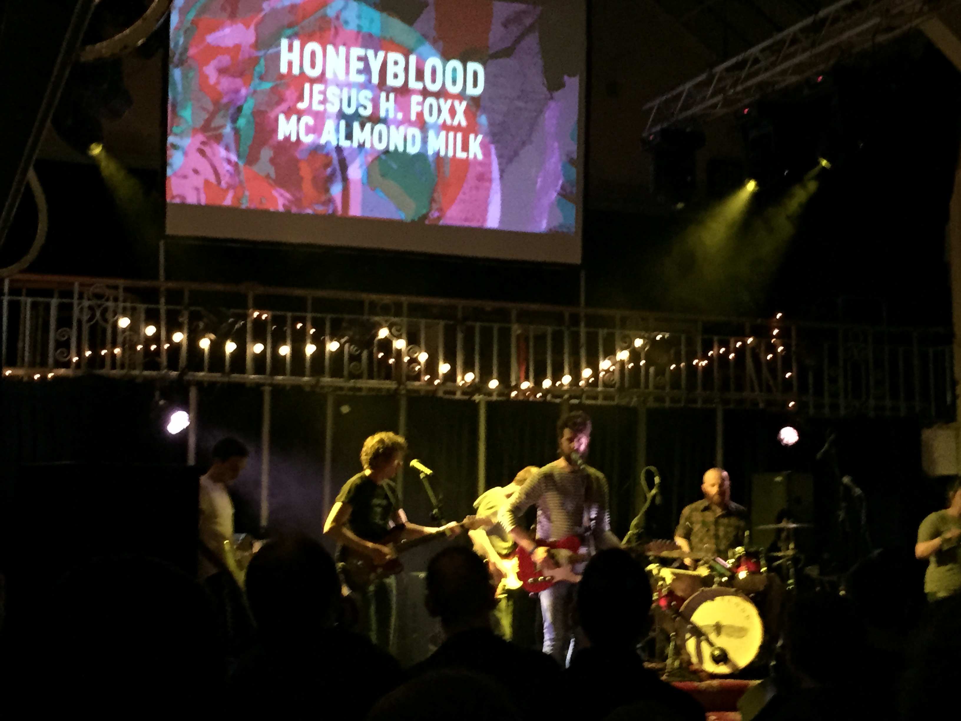 For a duo, Honeyblood make a very impressive sound live – the debut album released last year featured bass and other instruments which are not present in the live set – and the crowd of 300 or so at Summerhall, were soon bouncing about the hall…including your reporter pop-pickers. I must confess I missed the first support act, MC Almond Milk, but second up were Jesus H. Foxx who are definitely worth checking out. A six piece – three guitarists, bass player, drummer and keyboardist/percussionist – they certainly complimented what was about to follow, with what I would describe as post-punk jangly guitar rock (although I do hate genre labelling).