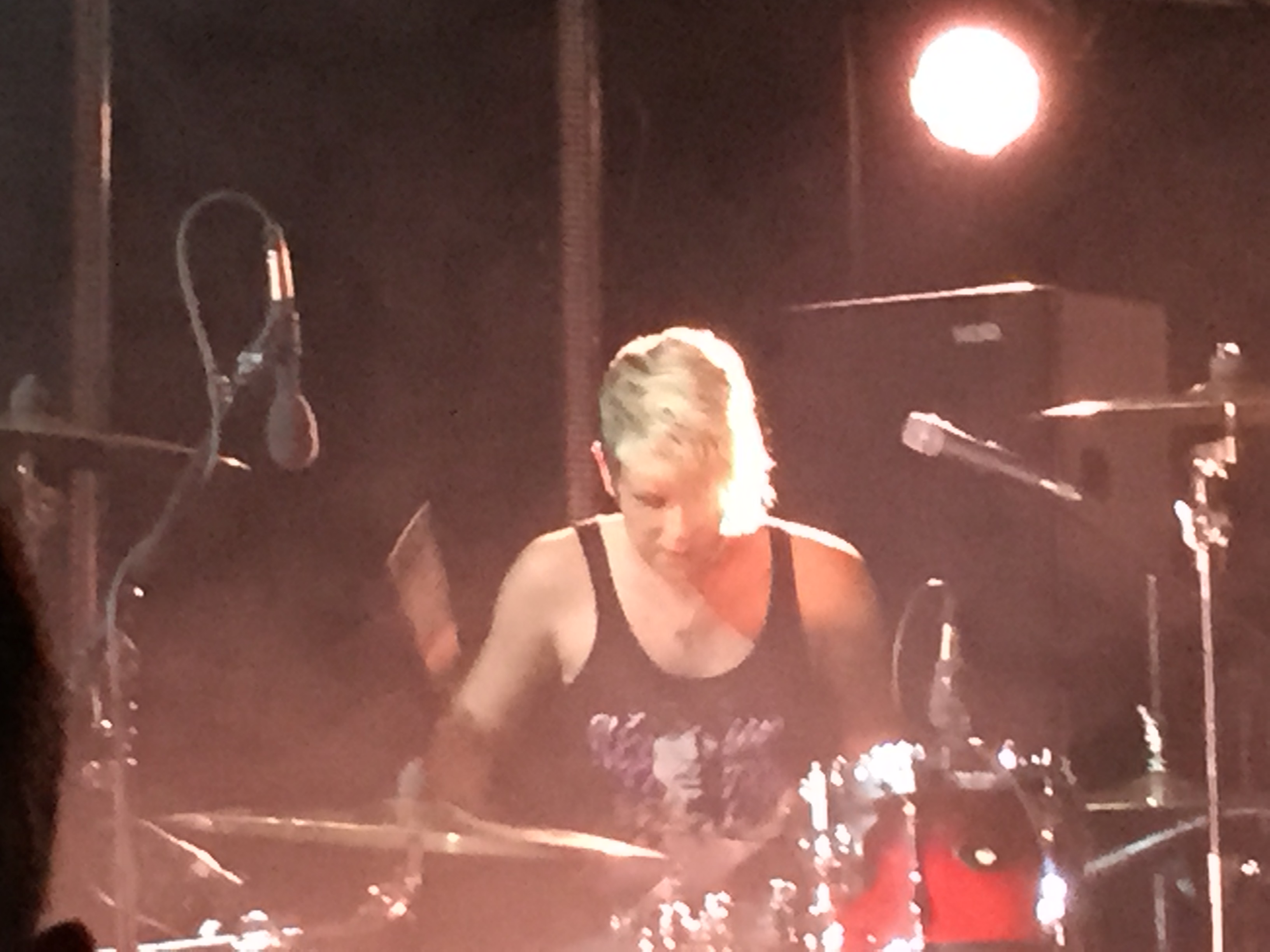 The headliners came on around 10pm and had the balls to start with a new track which I think Stina said was called “Kill You” and certainly bode well for that always difficult second album which we must assume is currently in the pipeline. I am not overly familiar with Honeyblood’s first album – I have it on vinyl, but have to confess it got buried in amongst the 50 or so LPs I bought around the same time – but that will certainly change after last night’s electric performance. It was a relatively brief set of around 45 minutes, followed by two numbers played when they came back on stage for the encore – certainly if compared to The Phantom Band who performed on the same stage last Thursday – but then if you are a duo you do have to work bloody hard!